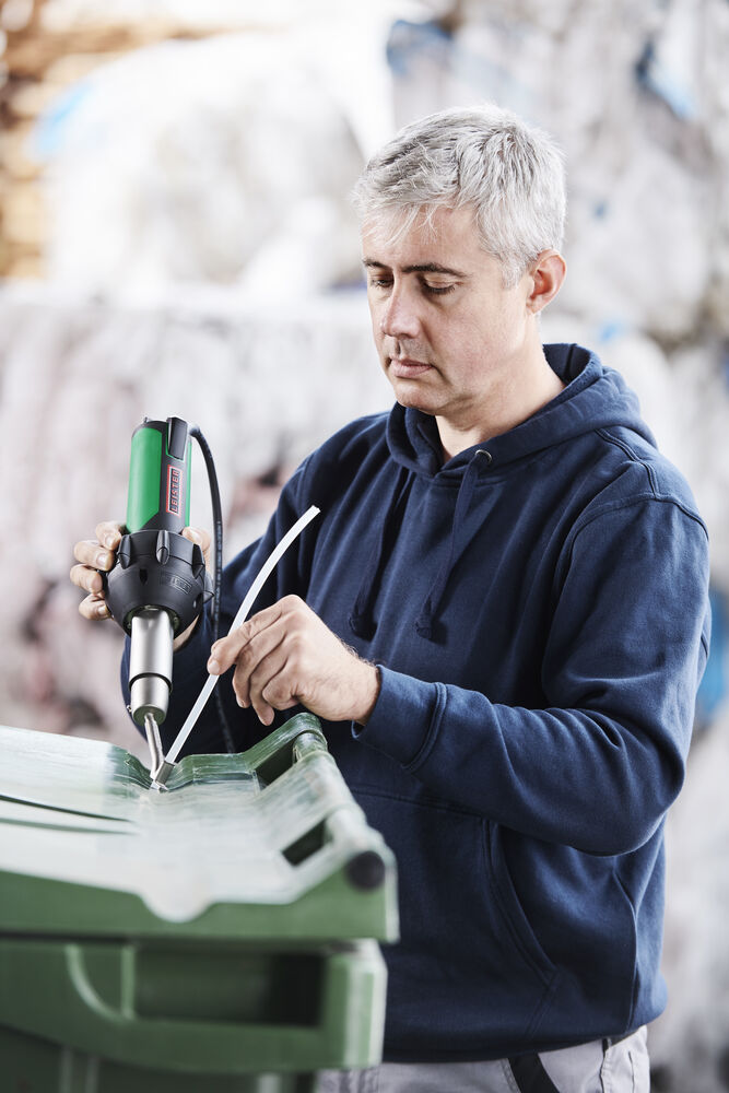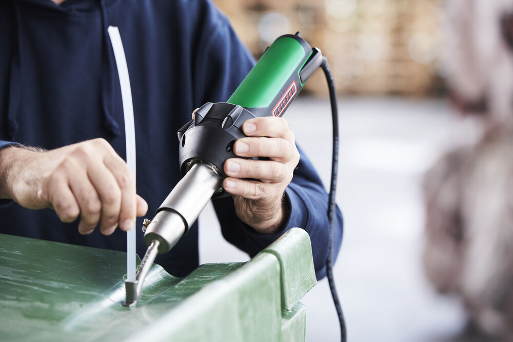 The kit contains everything users need for plastic welding in tanks and containers. In addition to Leister’s powerful TRIAC ST heat gun, the set contains the nozzles most commonly used in plastic tank and container welding: Speed welding nozzle (article no.: 106.992), pipe nozzle (article no.: 100.303) and tacking nozzle (article no.: 106.996) as well as a spare heating element. The TRIAC ST tank welding kit is suitable for tacking and welding different plastic profiles made of PP, PVC and HDPE.