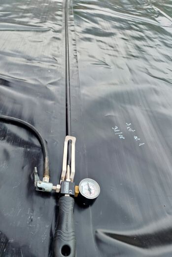 The reliable and handy compressed air testing device from Leister is the perfect solution for testing the air-tightness of double overlap seams with test channel. It is used on construction sites in civil engineering, in tunnels and on landfill sites. The revised model is now even safer and more precise - both in operation and in detecting leaks. The Leak tester is available in two versions: with conical needle for hard membranes such as HDPE or with a thin needle for soft materials such as PVC, TPO and FPO.