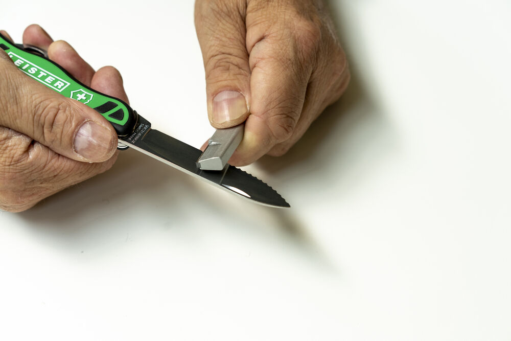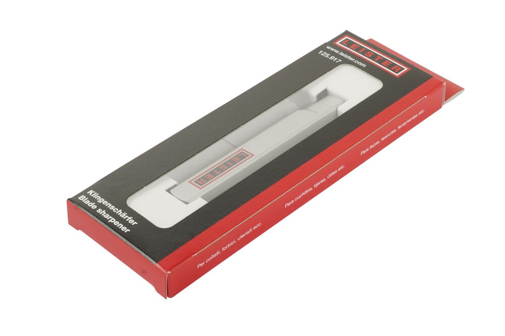 The blade sharpener from Leister belongs in every toolbox. It is used to quickly and easily sharpen various blades or knives. For example, the Leister blade sharpener is suitable for sharpening blades on the Leister edge planer (article no.: 151.188) and the Leister quarter moon knife (article no.: 106.969). Of course, the blade sharpener also sharpens all other knife and scissor blades.