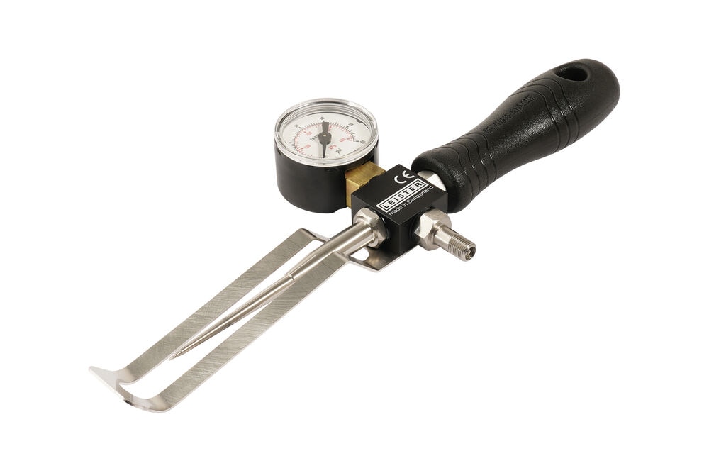 The reliable and handy compressed air testing device from Leister is the perfect solution for testing the air-tightness of double overlap seams with test channel. It is used on construction sites in civil engineering, in tunnels and on landfill sites. The revised model is now even safer and more precise - both in operation and in detecting leaks. The Leak tester is available in two versions: with conical needle for hard membranes such as HDPE or with a thin needle for soft materials such as PVC, TPO and FPO.