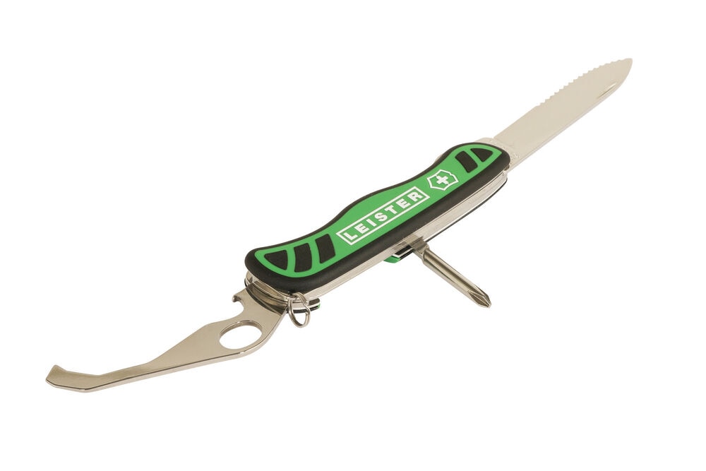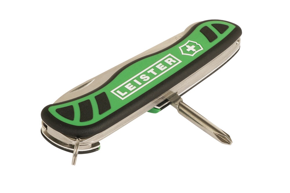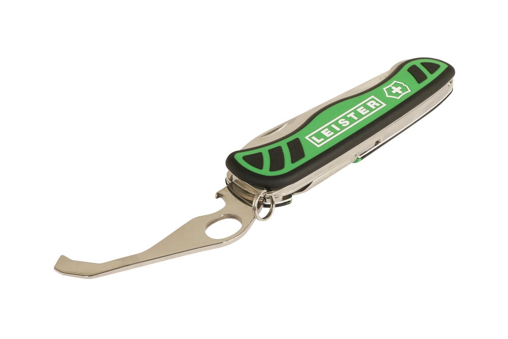 The seam weld tester multitool from Leister is primarily used for non-destructive overlap weld testing on thermoplastic roof membranes made of PVC, TPO, etc. The multifunctional weld tester, developed by Leister in collaboration with Victorinox, also includes a Phillips screwdriver, a bottle opener, a ring for fastening and a large serrated knife blade.