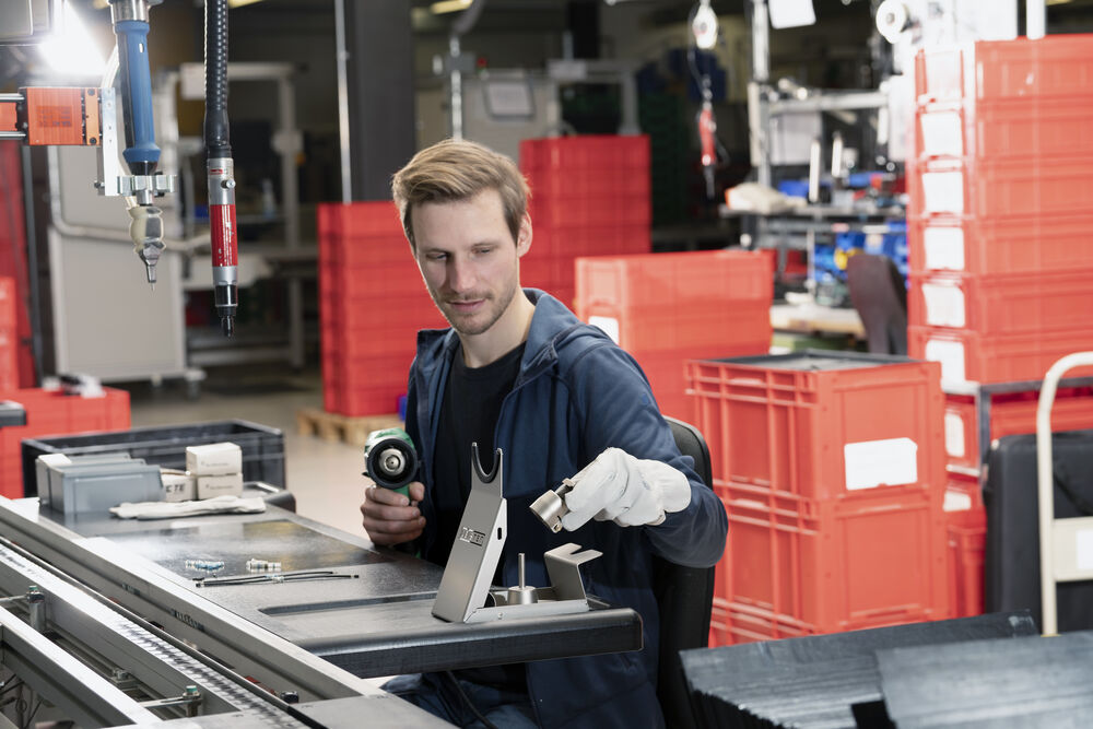 The Leister SOLANO AT hot air blower can be placed intuitively, quickly and stably on the robust device stand.