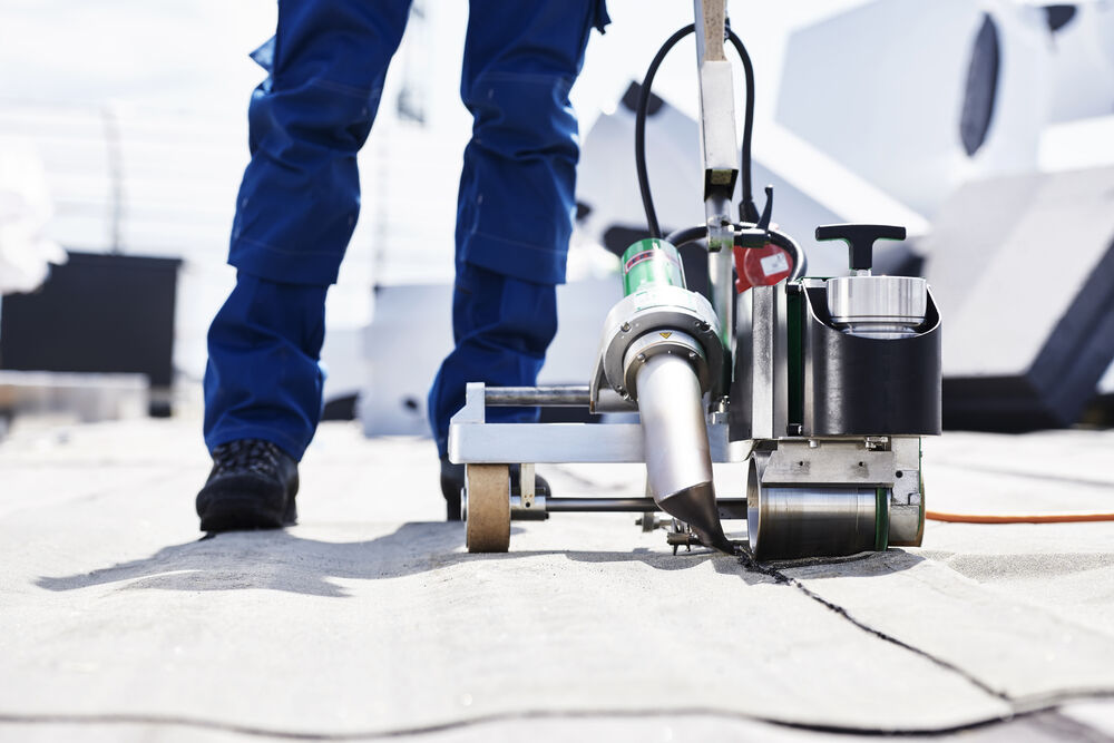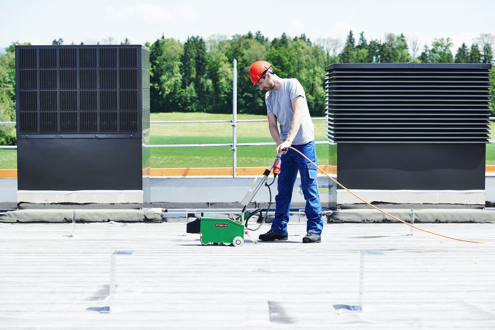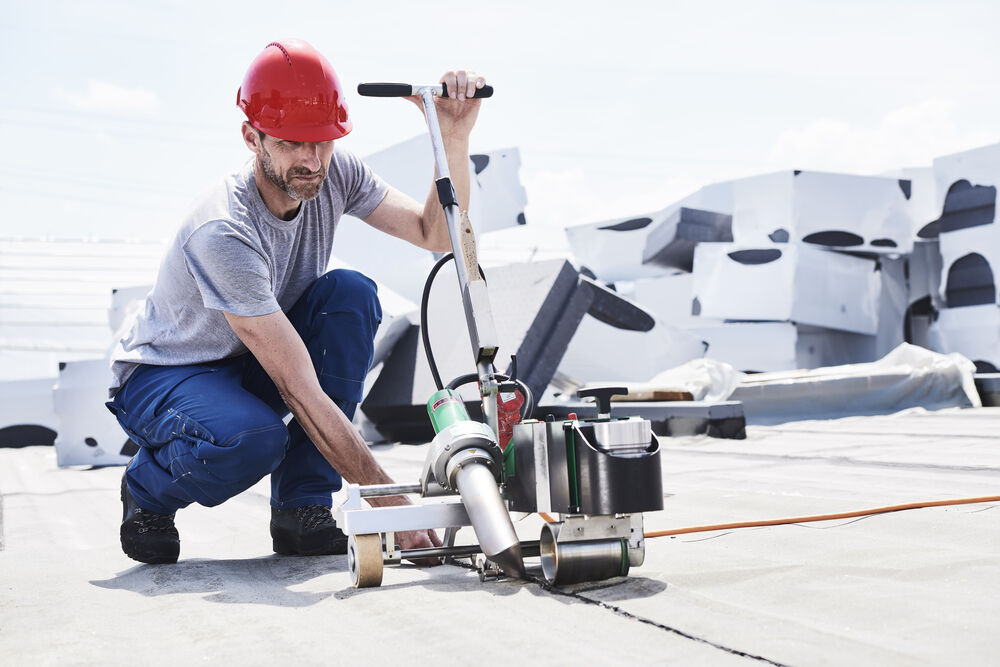 El BITUMAT B2 se desarrolló específicamente para soldadura sin llama de bitumen modificado. En comparación con la soldadura con llama abierta, solo se necesita un trabajador y una sola operación. Esto hace que la soldadura de bitumen modificado con herramientas de techado de aire caliente sea más segura, más eficiente y económica. La boquilla de bitumen adecuada proporciona costuras de soldadura precisas que solo se pueden garantizar con herramientas de aire caliente.
