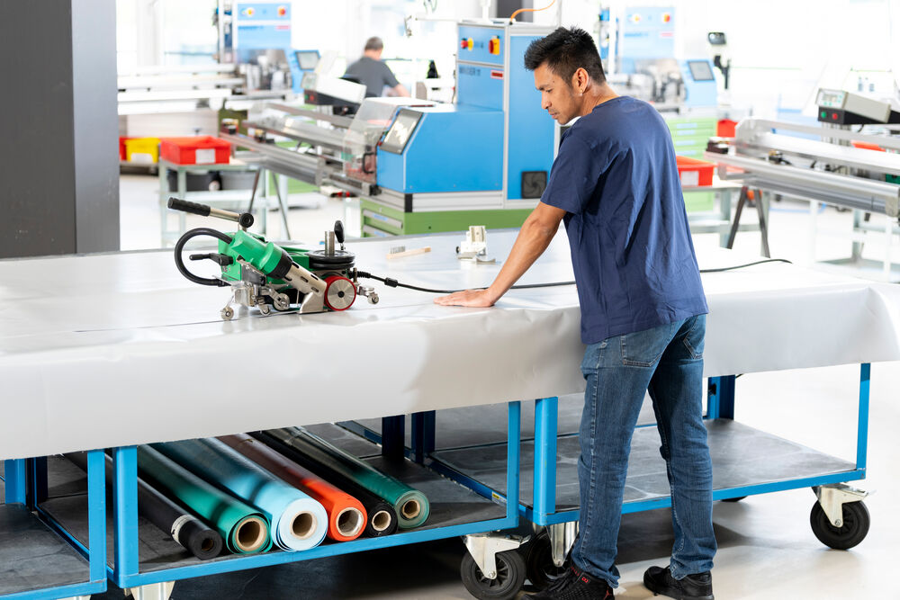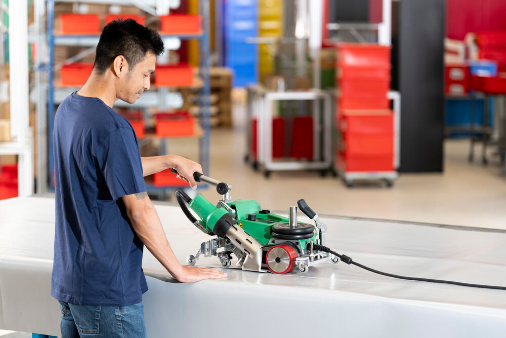 La UNIPLAN 510 es una soldadora automática eficaz y muy versátil que mejora notablemente la calidad de la soldadura en aplicaciones como lonas para camiones, carpas o pancartas. Perfecta para la soldadura de solapes, dobladillos y tubos, la soldadora automática UNIPLAN 510 es la solución ideal. Con boquillas de soldadura de alta calidad y modernos elementos calefactores que mejoran significativamente la eficacia y los resultados de la soldadura, ofrece resultados superiores para tareas exigentes.
