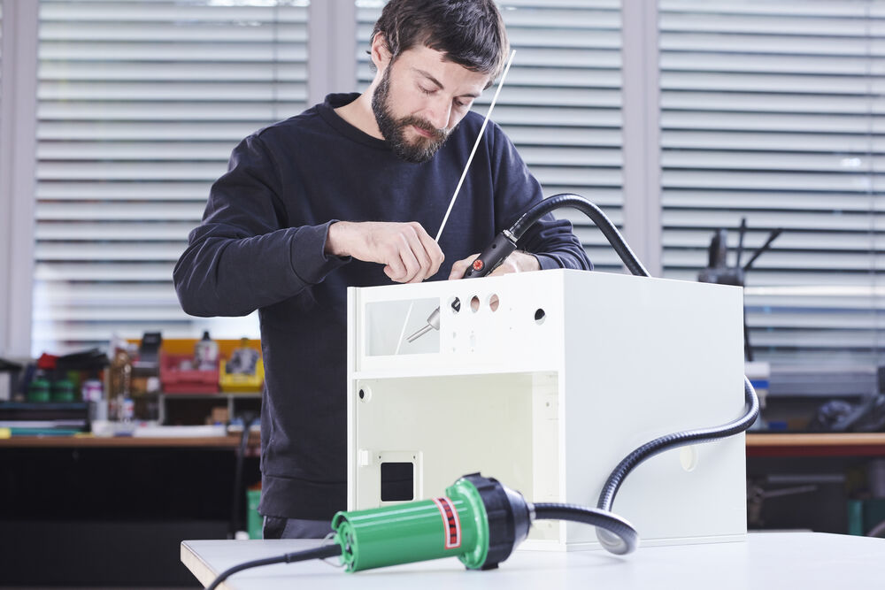 Le petit et pratique pistolet à air chaud LABOR S est également disponible dans le kit avec souffleur MINOR inclus. Les deux dispositifs se complètent parfaitement. Grâce à son poids léger de seulement 150 g, il permet de travailler sans fatigue. Grâce à la combinaison avec le souffleur MINOR, l'achat d'une source d'air supplémentaire est inutile.